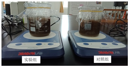2. 分別用量筒量取50ml缺氧濃縮泥倒入兩個150ml燒杯中,然后均加入50ml好氧上清液;