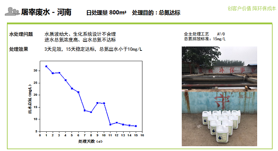 庫巴魯®總氮降解技術,3天見效,15天達標。復合碳源在實踐應用中證明其能節省50%投加量,降低20%處理費用。已在全國各地成功完成數十個項目。